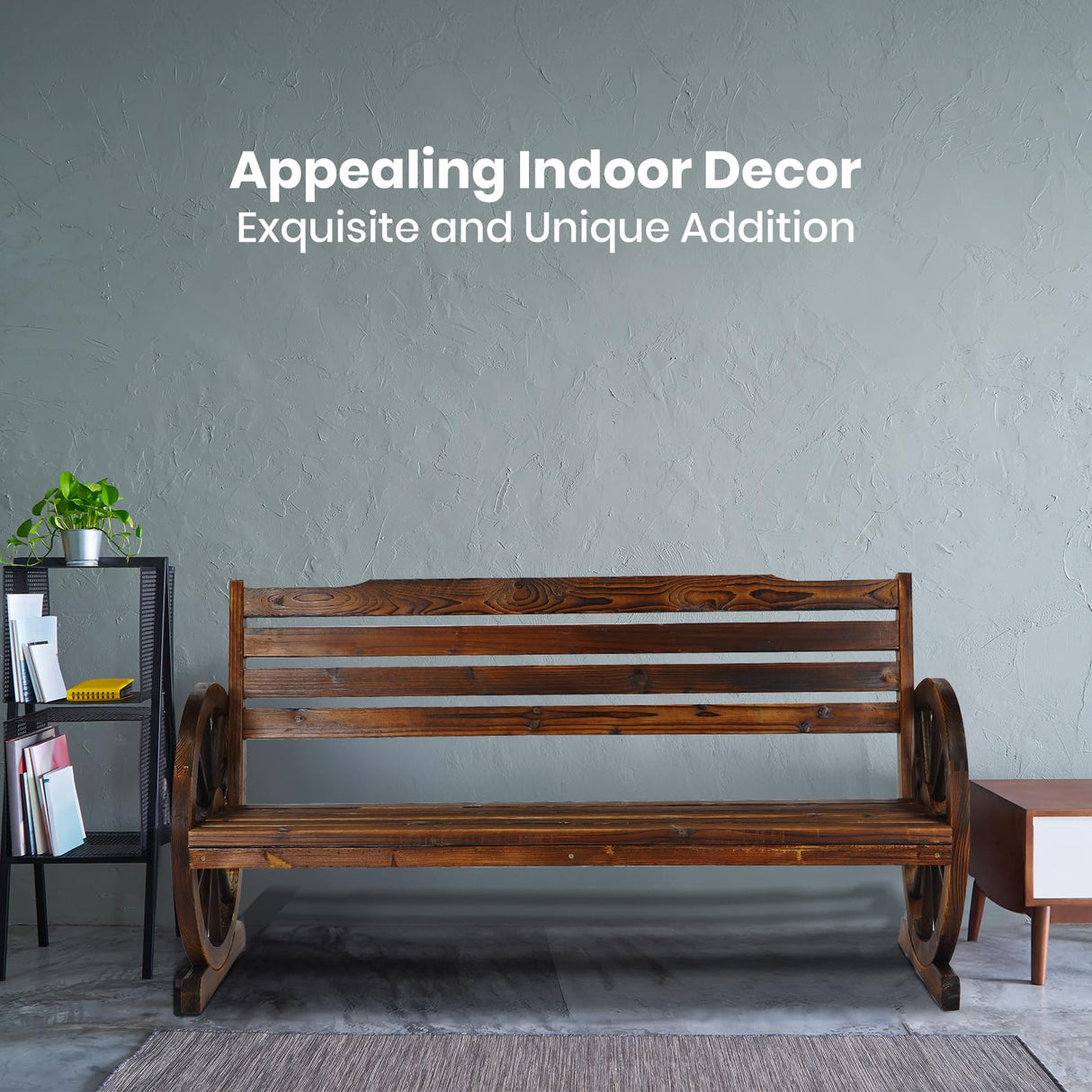- Wagon-wheel Armrests: Adding a touch of nostalgia, the wagon-wheel armrests bring whimsical charm to your outdoor décor, enhancing the bench's visual appeal and character.
