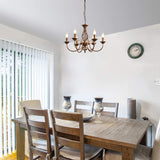 French Country Chandelier, Rustic 6 Light Bronze French Country Pendant Light Fixture, Vintage Metal Chandelier for Dining Room Kitchen Living Room Bedroom Hallway, E14 Base