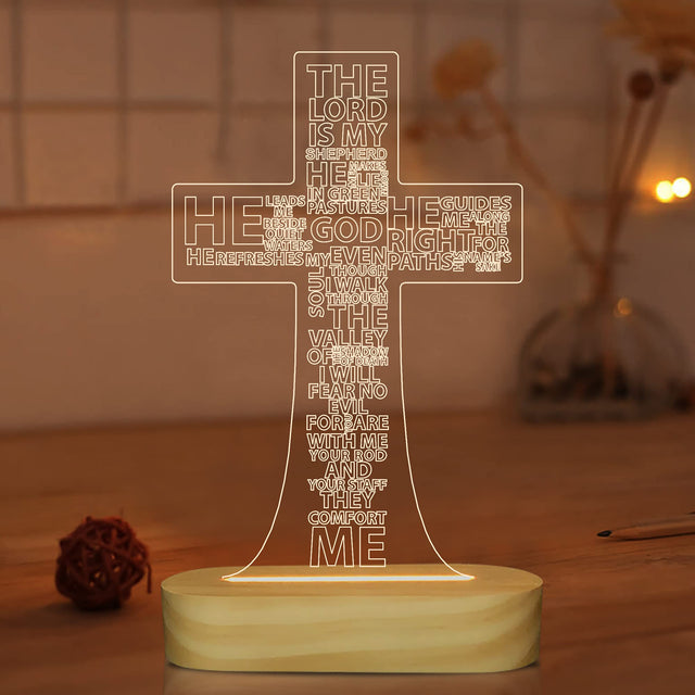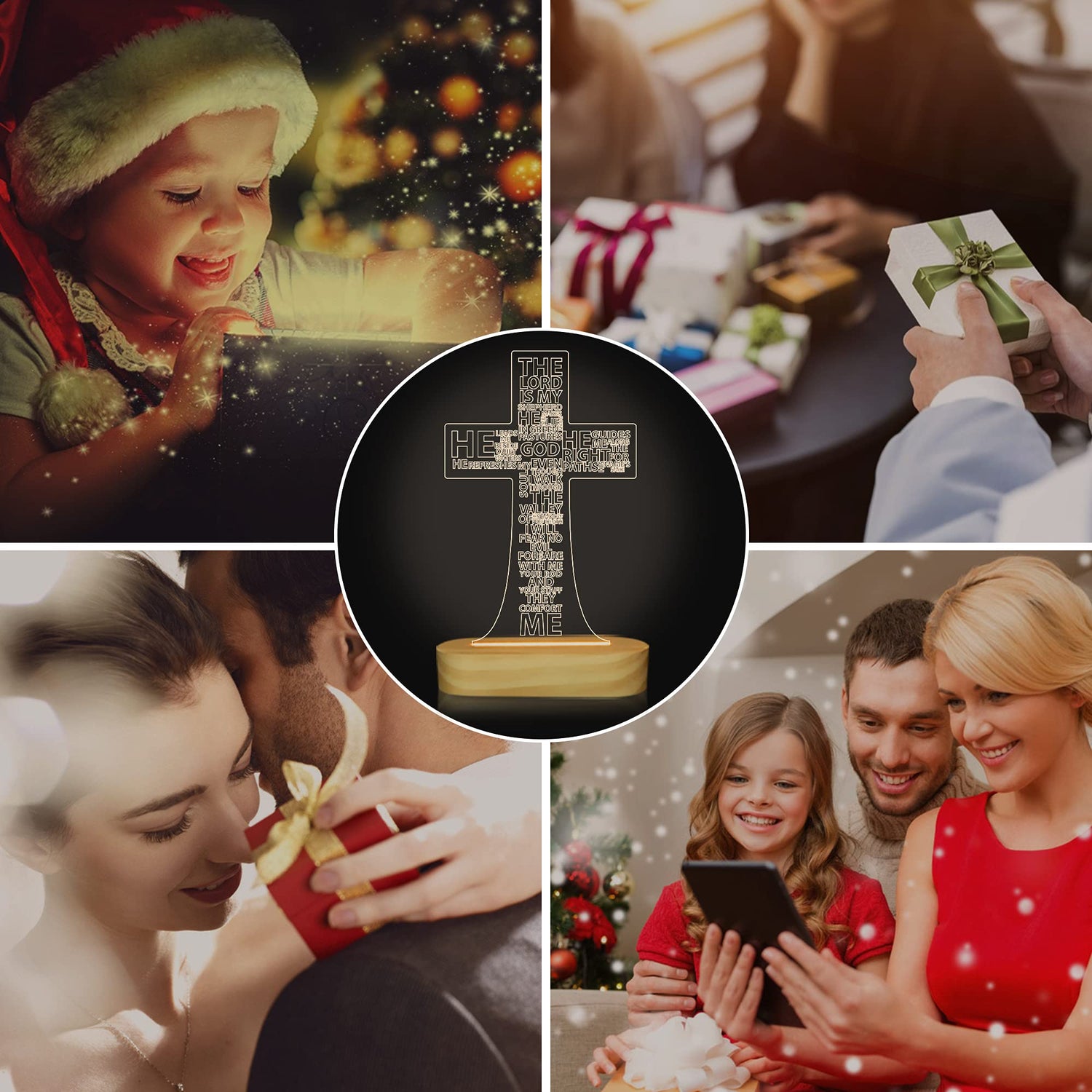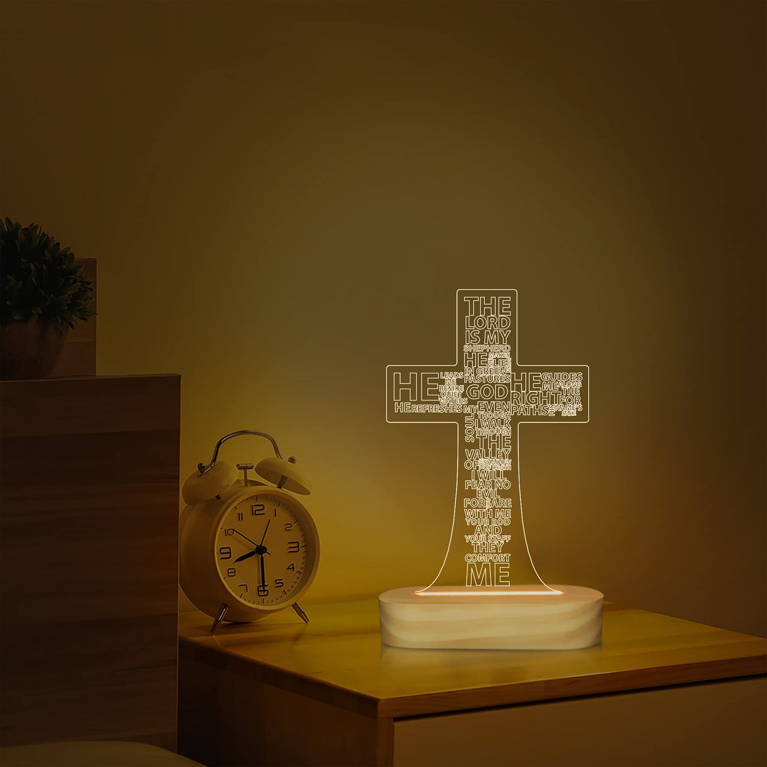 Jesus Cross 3D Night Light Desk Table Lamps,Warm Colors LED Wooden Lighting for Holiday Gifts
