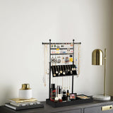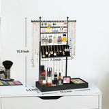 Jewelry Organizer Stand, Jewelry Stand with Necklace Display Holder 3 Tier Earring Organizer Rustic Base Tray with Ring Stand Necklace Stand Tower for Women Girls Gift