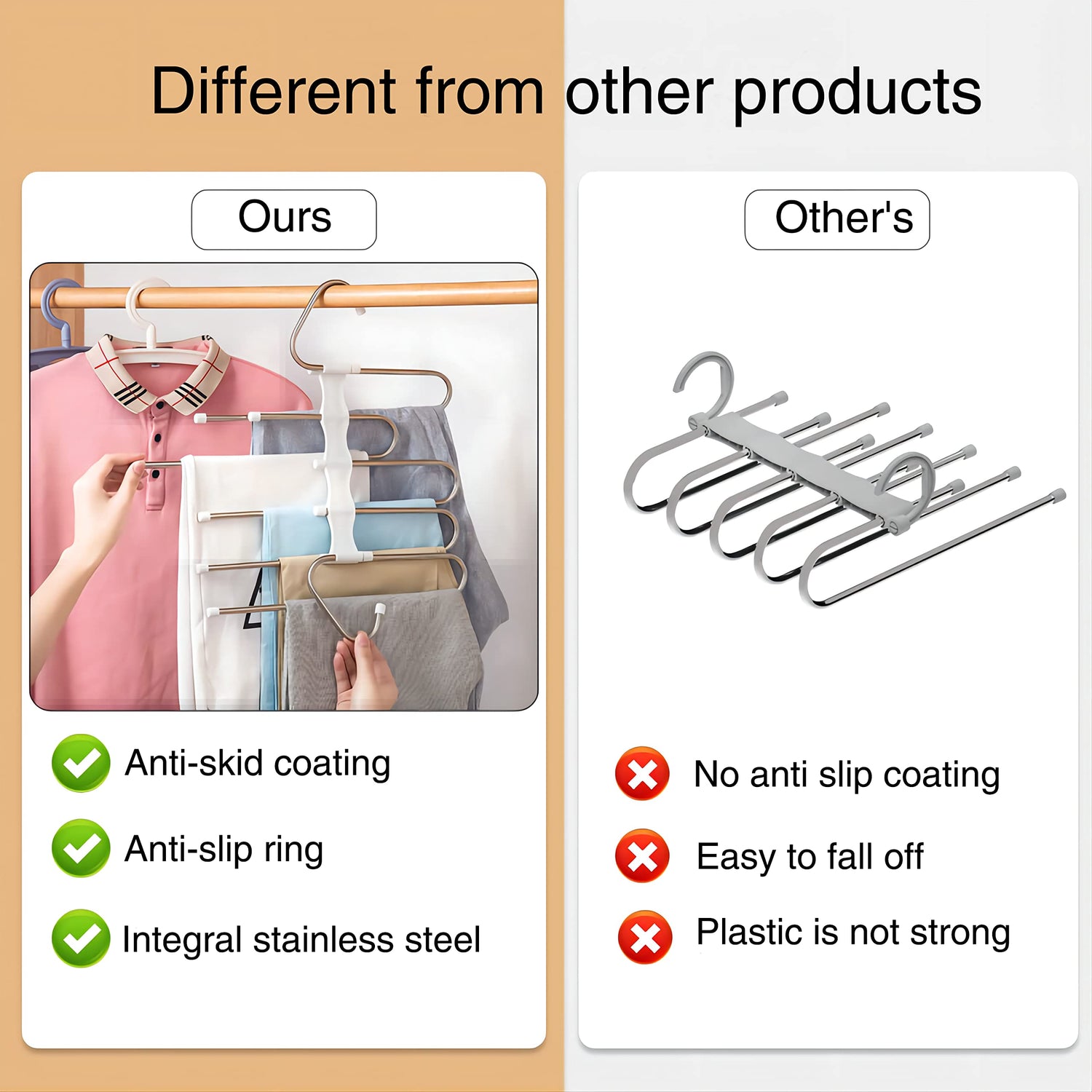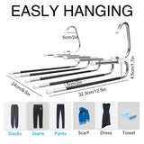 - Closet organization: No need to install, ready to use.Our multifunctional pants rack hanger are made of durable stainless steel and abs plastic, sturdy while lightweight. They are strong enough even if your pants are oversized or heavy duty and won't be easy to be out of shape.
