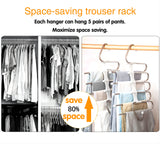 - Pants Hangers Space Saving: pants organizer, pack of 1. Each pants rack can be hanged for 5 jeans/trousers/scarf at same time. Closet organizers and storage , Save at least 80% of space and keep your wardrobe clean and orderly.