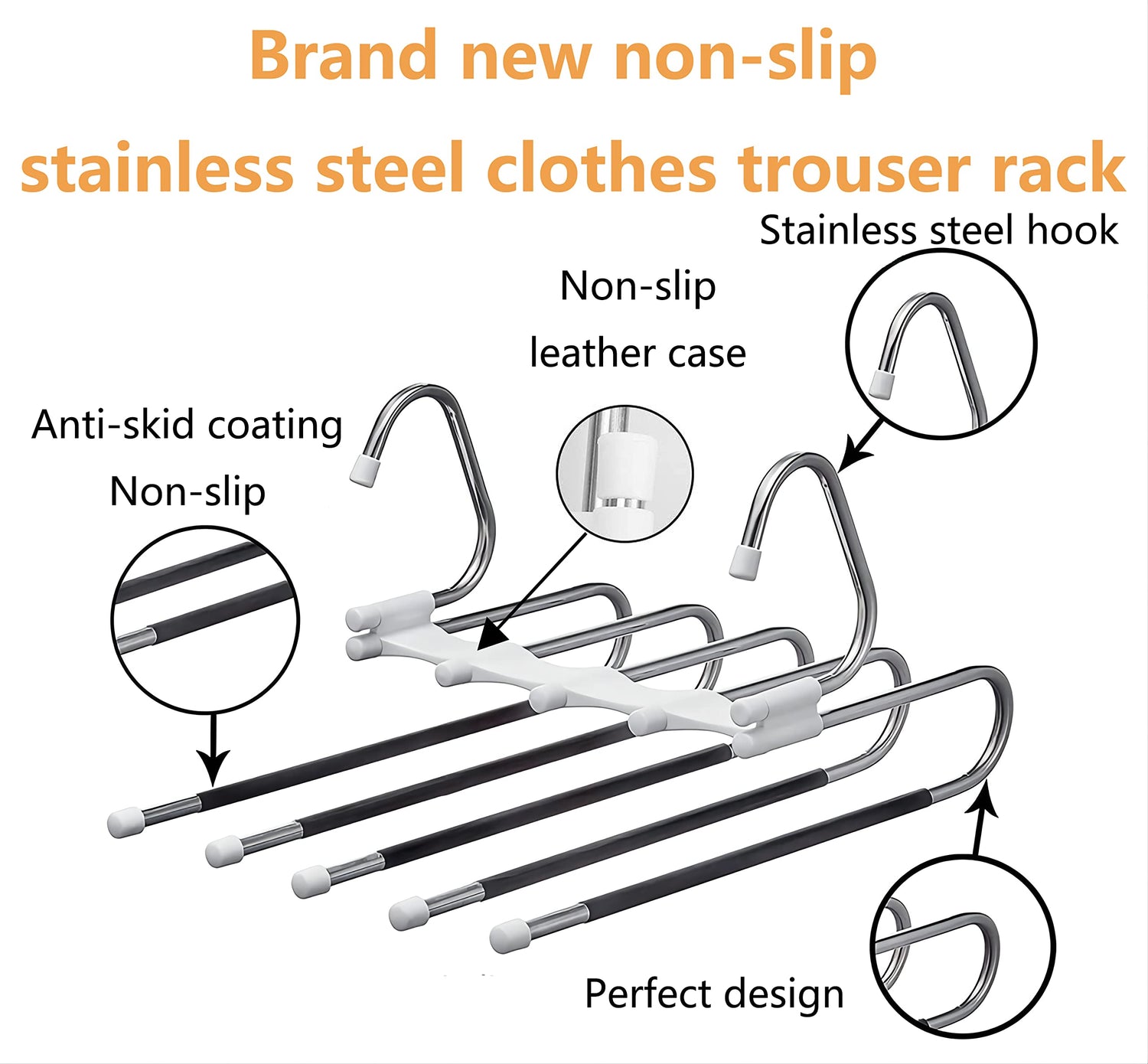 Trouser rack saves space, 2 Pack for S-shaped stainless steel clothes trouser rack, anti-slip design, Anti-Slip Design,Clothes Closet Storage Organizer for Pants Jeans Trousers Skirts Scarf