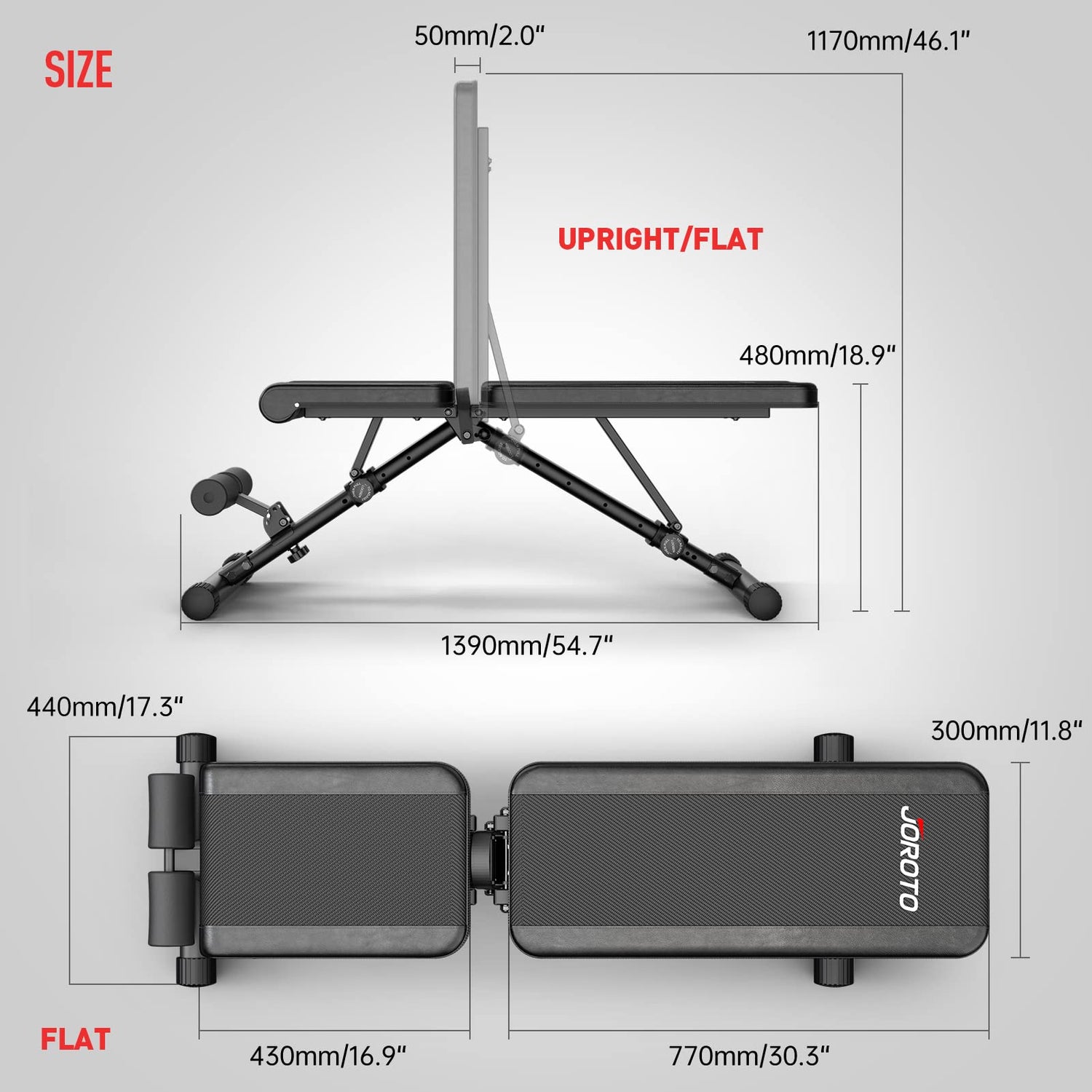 - Buy with Confidence: For all JOROTO products, the measurement and capacity are the actual results, NOT a mendacious number! Package included installation tools and clear user manual. All brand new weight benches have 1 year FREE replacement parts! Customer support team response within 24 hours! 100% satisfied solution if any issue!