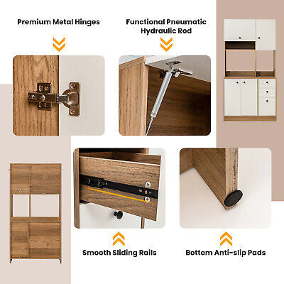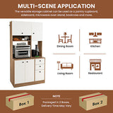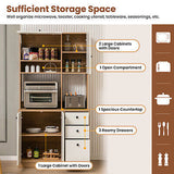 The spacious countertop, 3 cabinets, 1 open compartment and 3 deep pull-out drawers provide ample storage space for your kitchenware, dinnerware, microwave oven, wine, glasses, condiments, etc. And 2 adjustable shelves enable you to customize the space as needed, which is easy to move and adjust. Moreover, the open design allows for easy cable management. The combination of sturdy structure and anti-toppling fitting ensure the tall pantry cabinet is as stable as possible. Apart from using it to tidy up your kitchen, you can also place the modern and practical storage organizer in the dining room and living room as you wish.