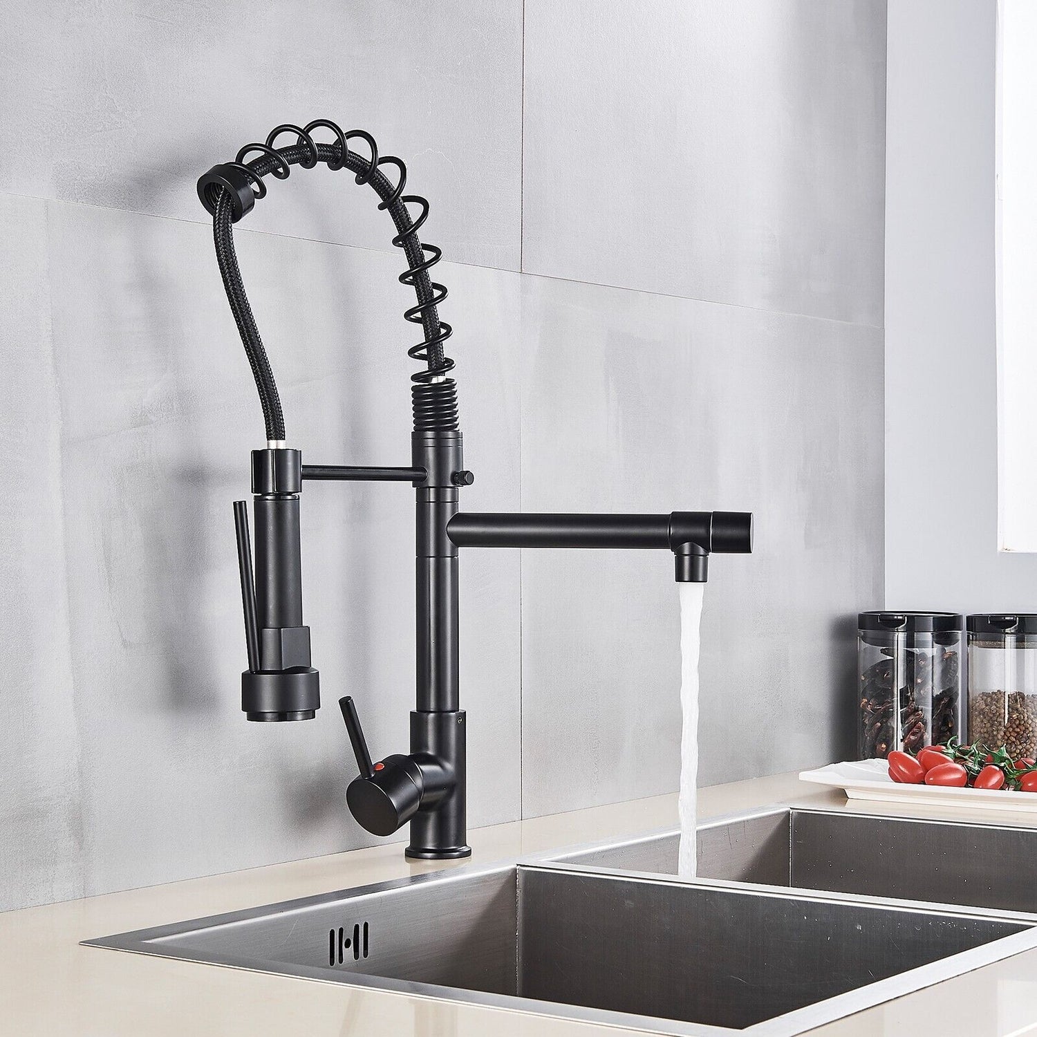 Kitchen Tap Black Pull Out Mixer Taps Sink Basin Faucet Vanity 360° Swivel
