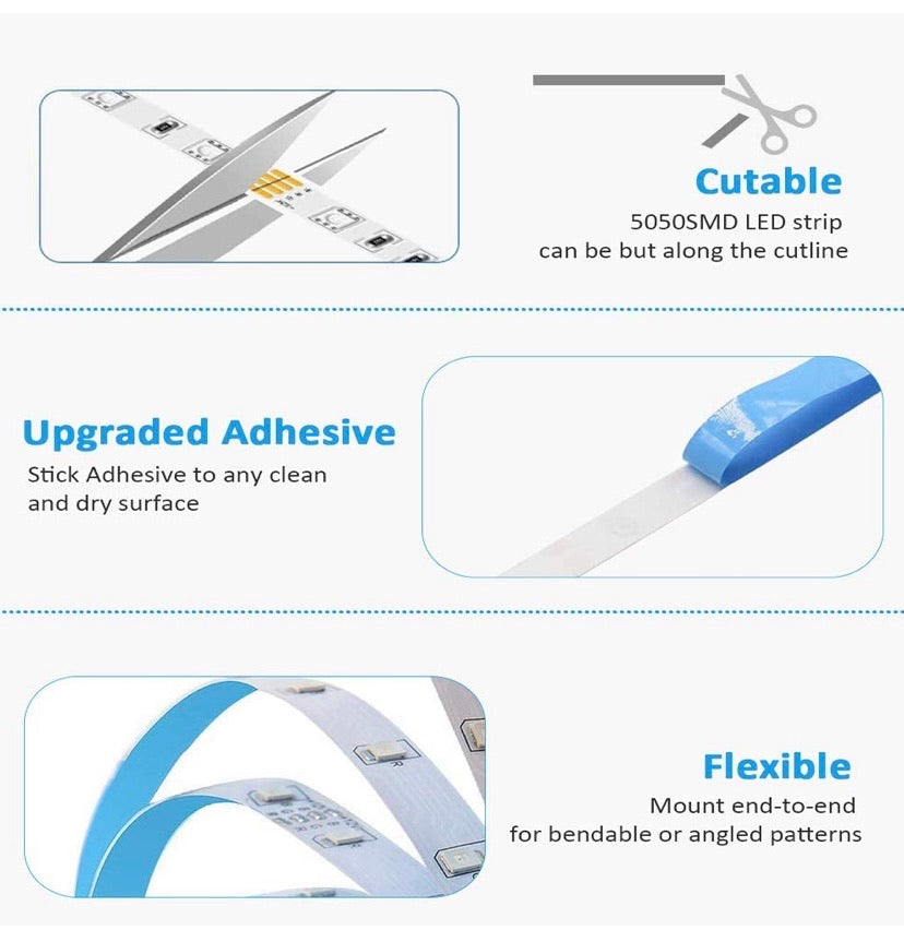 - High-quality and safe to use: Super bright and high-quality 5050 LEDs allow the led strip lights to be very colorful and durable. These are energy-friendly lights and the adapter is 24V, low voltage, safe to use.