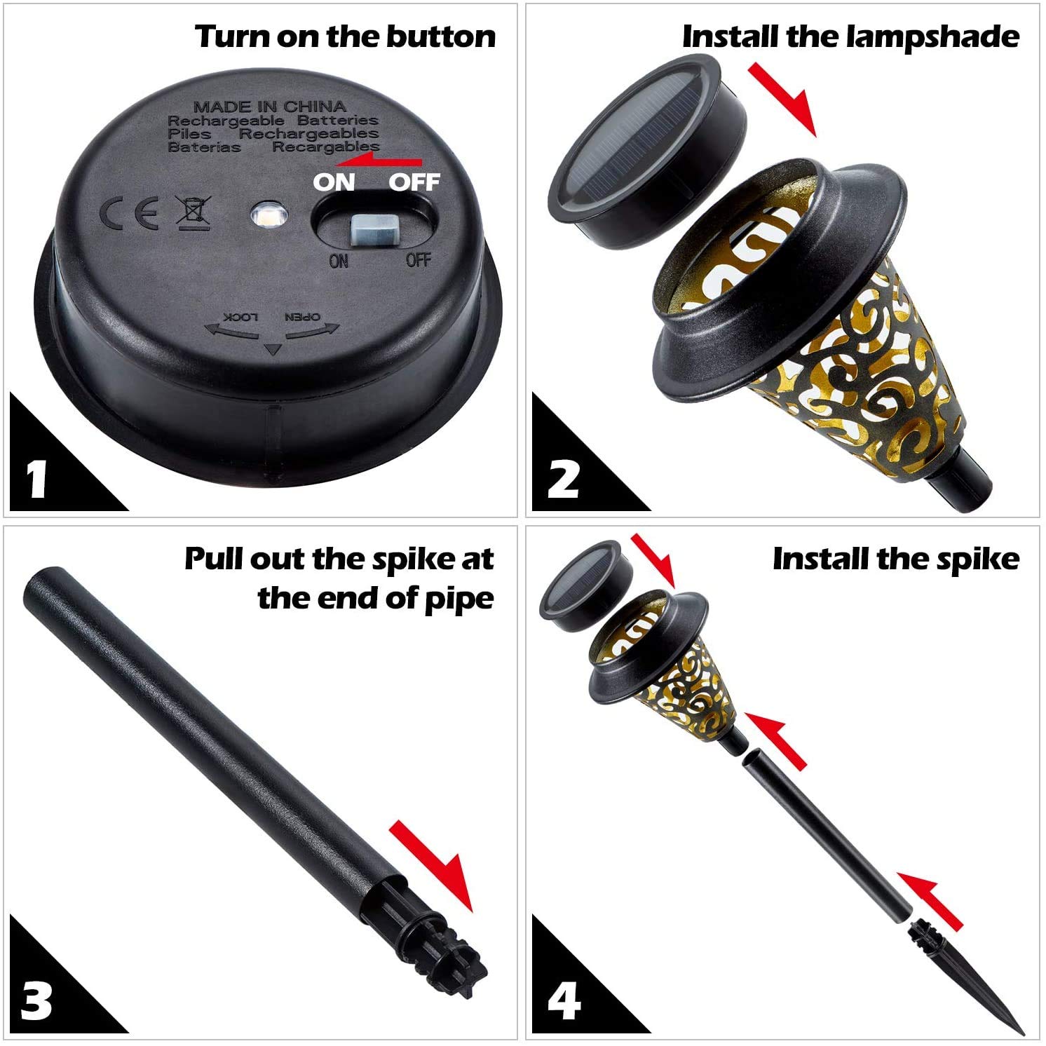 - Weatherproof: solar path light's waterproof system and metal material resists high temperatures and rain and snow. The anti-rust coating on the metal surface is effective in preventing regenerative erosion.