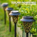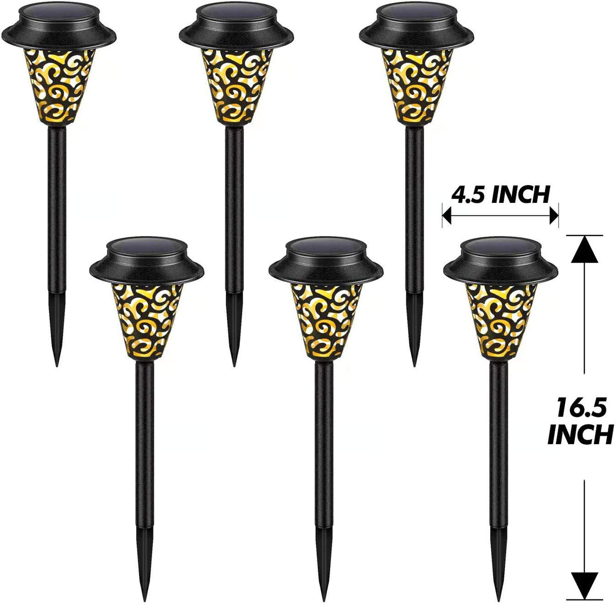 LeiDrail Solar Pathway Lights Outdoor Garden Path Light Warm White LED Black Metal Stake Landscape Lighting Waterproof for Halloween Party Yard Patio Walkway Lawn In-Ground Spike - 6 Pack