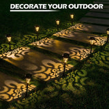 - Upgraded Solar Panel: Newly developed LeiDrail solar pathway lights is made of metal with black color. Warm white LED lights and unique patterns bring special effects to the path at night. (Press the switch "ON" before use.)