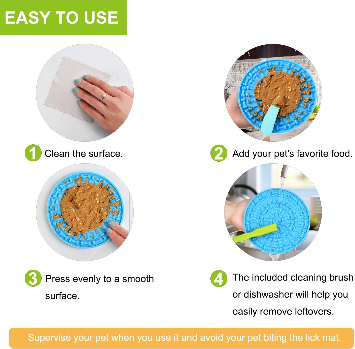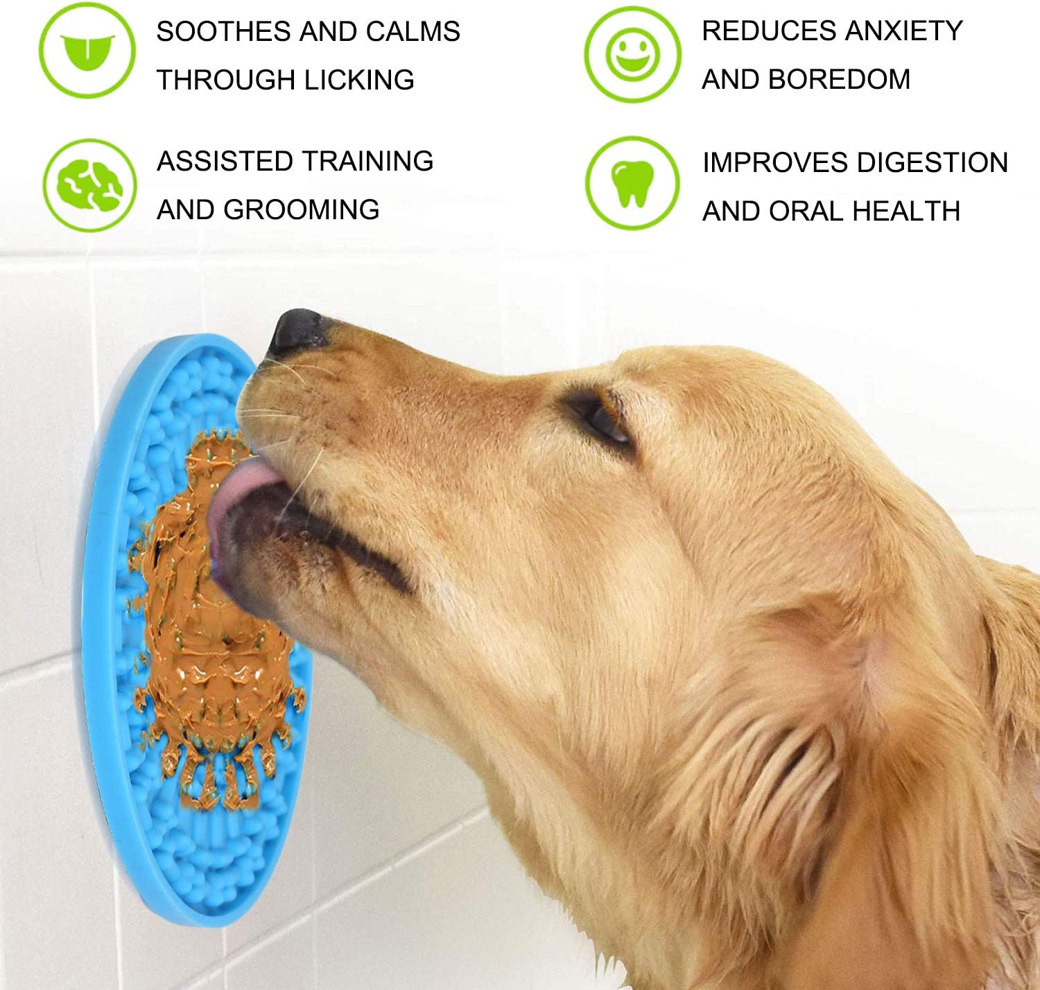 - INTERACTIVE AND HEALTHY: Using Lick Mat for Dogs can help you easily complete your pet's bath, reduce daily anxiety and disruptive behavior, and to keep your pet eating slowly to keep your diet healthy. It's also be used for grooming and training.