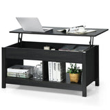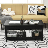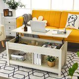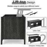 Lift Up Top Coffee Table Modern Open & Hidden Storage Shelf Ivory/Black