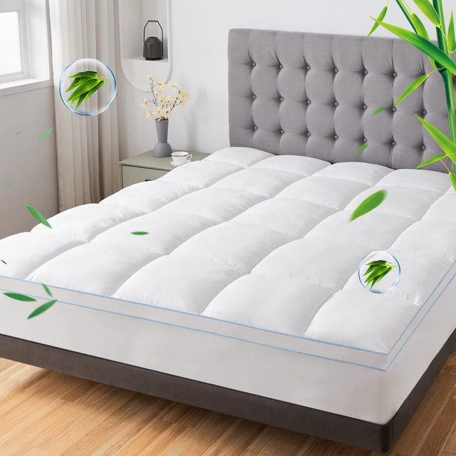 - 🌿Cooling & Breathable - Enjoy improved airflow and ventilation with our bamboo mattress topper. The breathable nature of bamboo fibers allows for optimal air circulation, keeping you cool and comfortable throughout the night. No more waking up feeling overheated!