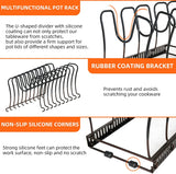 Expandable Pans Organizer Rack, 10 Adjustable Compartments, Cookware Holder for Pantry or Cabinet, Brown (Pan Rack)