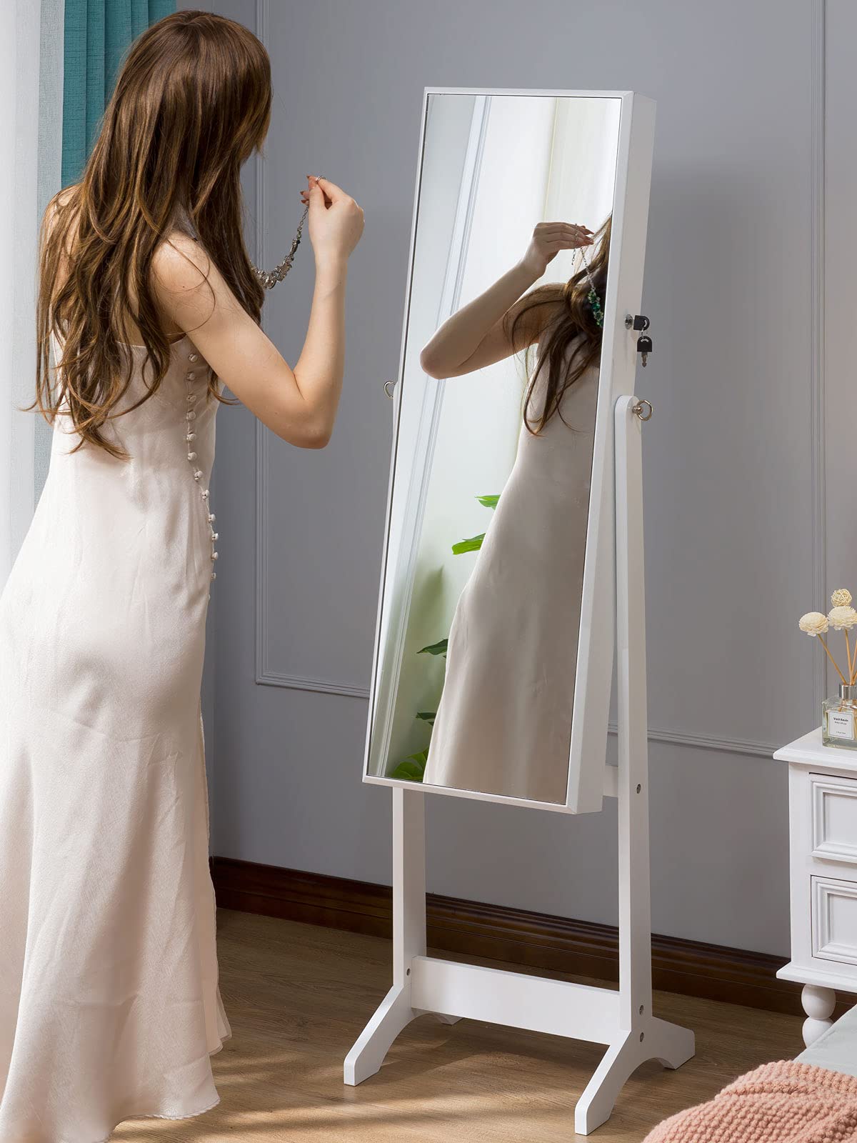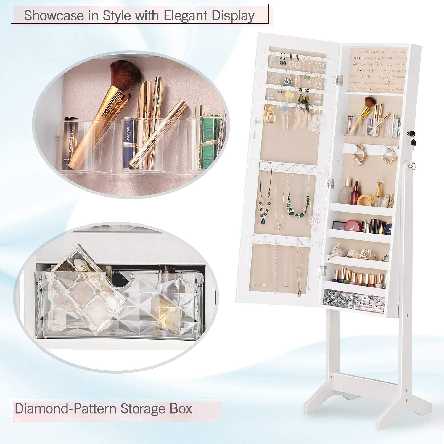 • Free Standing with Velvet Liner]: Convenient! Move your jewelry cabinet with so much ease anywhere, anytime. Super-rich, lush velvet interior protects your jewelry from moisture and tarnish