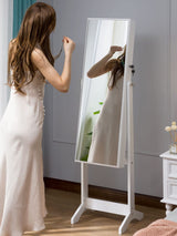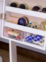 Jewellery Cabinet Standing full Screen Mirror Makeup Lockable Armoire, Large Cosmetic Storage Organizer w/Brush Holder white