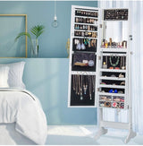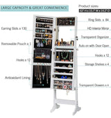 Luxfurni LED Light Jewelry Cabinet Standing Mirror Makeup Lockable Armoire, Large Storage Organizer w/Drawers