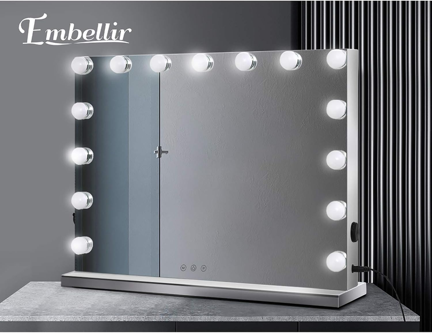 Get the star treatment with our gorgeous Embellir Full-length LED Mirror. The energy-efficient LED light strip around the mirror really lights up your reflection during your daily makeup regimen or personal fashion show. The aluminium frame is sturdy and lightweight and adds a glistening touch of glamour to the entire mirror. The frame sits on an equally smooth powder-coated MDF base for good stability and durability. Even more wonderful is that the LED light can be easily adjusted for brightness and colour temperature (choice of cool white, daylight and warm yellow) with the included smart remote control. Not least, the mirror can be used as a freestanding model or wall-mounted to suit your décor. Turn your bedroom or bathroom into a celebrity dressing room overnight with our LED mirror. And enjoy the beauty in all its illuminated brilliance.