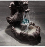 Dragon Backflow Incense Burner/Stick Incense Holder DescriptionIn ancient times, people will often burn deodorant in the wood. Therefore, before the ancients always incense burning furnace, read or play art, cleaning their thought, make them focus. The Backflow Principle: because the density of smoke is heavier than the air density, smoke stream from the high down like a waterfall.Dragon Backflow Incense Burner/Stick Incense Holder Features- Brand: Mangetal.- Color: Black/Brown.- Material: Ceramics.- Size: Approx. 16 * 15.5cm.- Exquisite workmanship, can be a classical furnishings, with meditation and aid-sleeping effect.- As a refined interest, or for your special hospitality.- Small size Dragon Incense Burner, easy to carry.- Pls note that smoke can't be backflow as the picture shown if ordinary incense is lit, but can be backflow if backflow incense used. Besides, pls incense in a closed environment without wind. Warm Tips:After cones burned, it will leave yellow liquid and ashes on Dragon Incense Burner Wash it with water, Naturally dry would be great.Package Including1 * Dragon Backflow Incense Burner Stick Incense Holder + 10 * Backflow Incense Cones If there have any problems of our backflow incense holder, or lack of free backflow cones, just kindly email and inform us immediately, we would give you one big supprise!