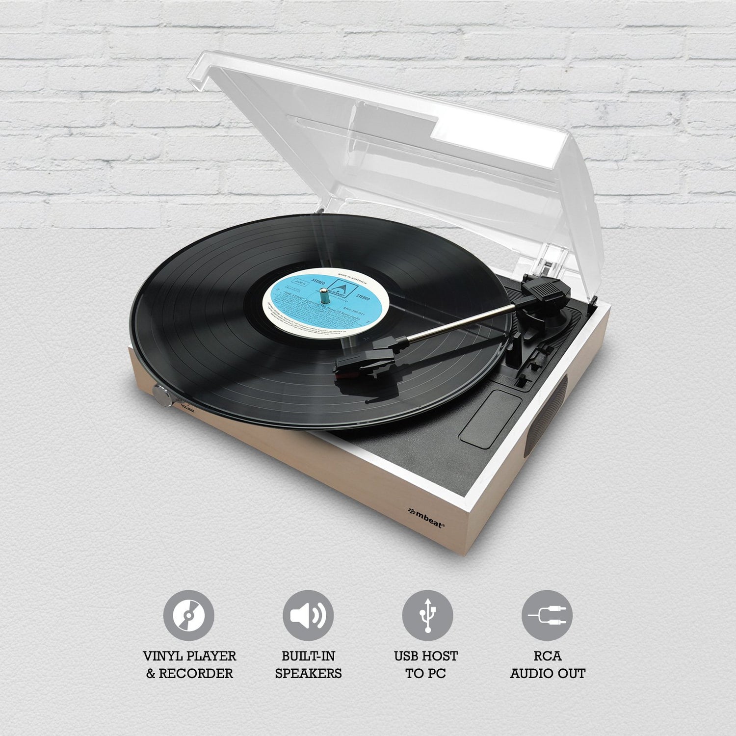 - mBeat Wooden Style USB Turntable Recorder in Natural