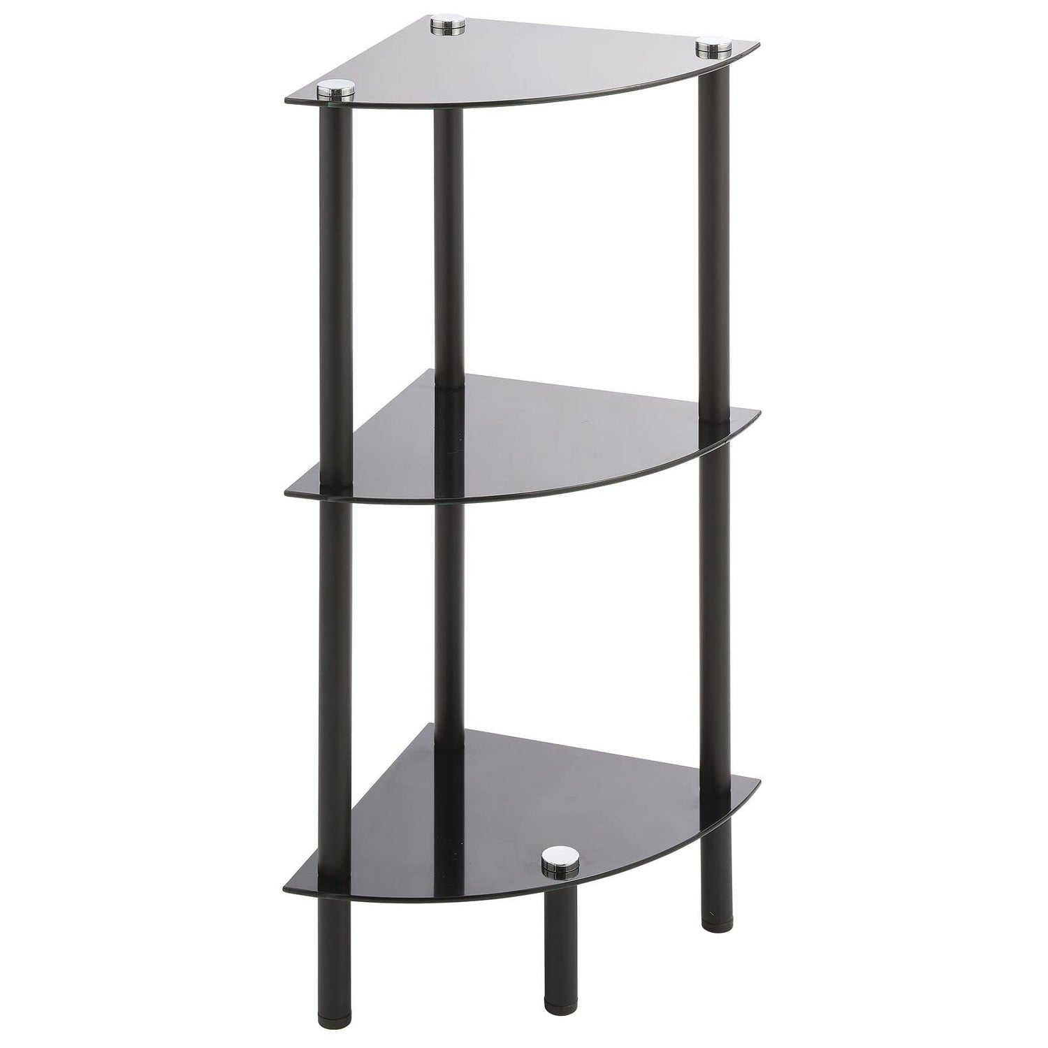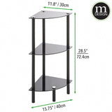 Design Home Floor Storage Corner Tower, 3 Tier Open Glass Shelves - Compact Shelving Display Unit - Multi-Use Home Organizer for Bath, Office, Bedroom, Living Room - Black/Black