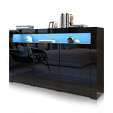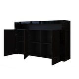 Modern 3 Doors Buffet Sideboard Cabinet High Gloss Cupboard w/Free RGB LED BK