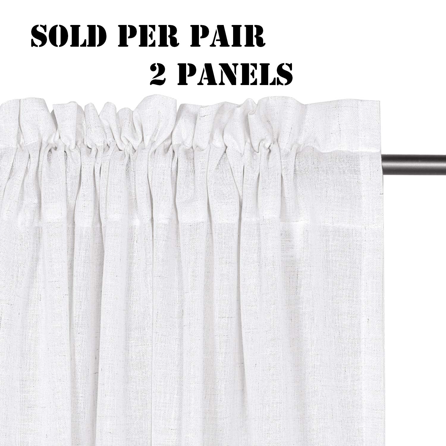 Natural Rich Linen Curtains Semi Sheer for Bedroom/Living Room | Rod Pocket Textured Window Curtain Drapes Privacy Added Soft Curtains, White, Sold Pair, Each Piece 132cm x 243cm