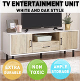 Oak TV Stand 120cm Entertainment Unit Storage Cabinet Unit Cupboard Shelf New