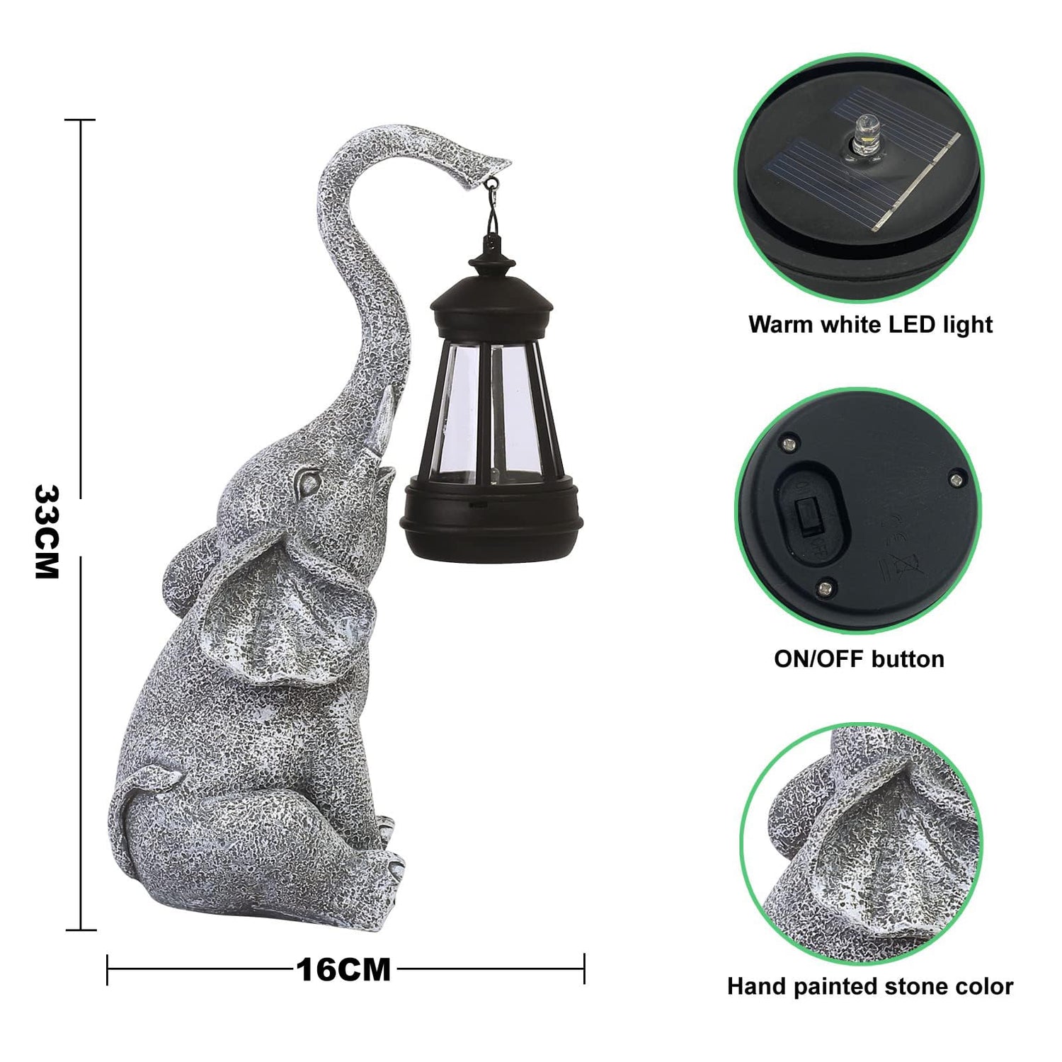 - Durable All-Weather Construction: Unfazed by rain or shine, this IP44 waterproof elephant sculpture and solar lantern endure any climate or condition with ease. Crafted to withstand the elements, it's an ideal accent for your outdoor spaces, whether adorning pathways, flowerbeds, or beyond.