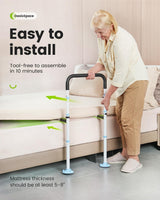 - Fall Prevention & Safe - Bedside Support A safe and secure grip to help you get in and out of bed safely. Allow seniors, disabled individuals, pregnant women or anyone with physical limitations or injuries to get out of bed unassisted. The bed rail is held securely in place with a stabilizing bar and rubber tipped legs