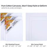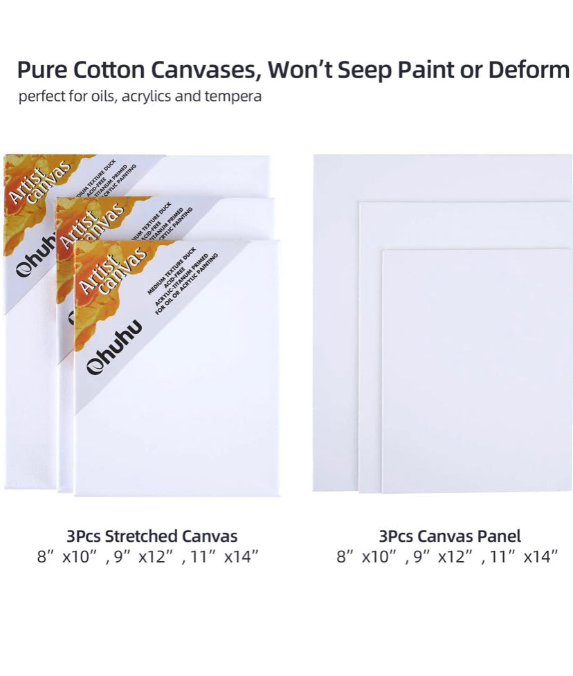 - WOOD EASEL AND TOP QUALITY CANAVAS: It's for so much more than just painting. The 14" Painting Easel is perfect for sketchpads, whiteboards, chalkboards, displaying photographs, and even holding books while you study. 3 canvas panels and 3 stretched canvases(8x10, 9x12, 11x14), made with real, pure cotton. The surface comes pre-treated so that the paints stay at the surface and dont seep into the back. Just start painting with your favorite medium, such as oil, acrylic and tempera