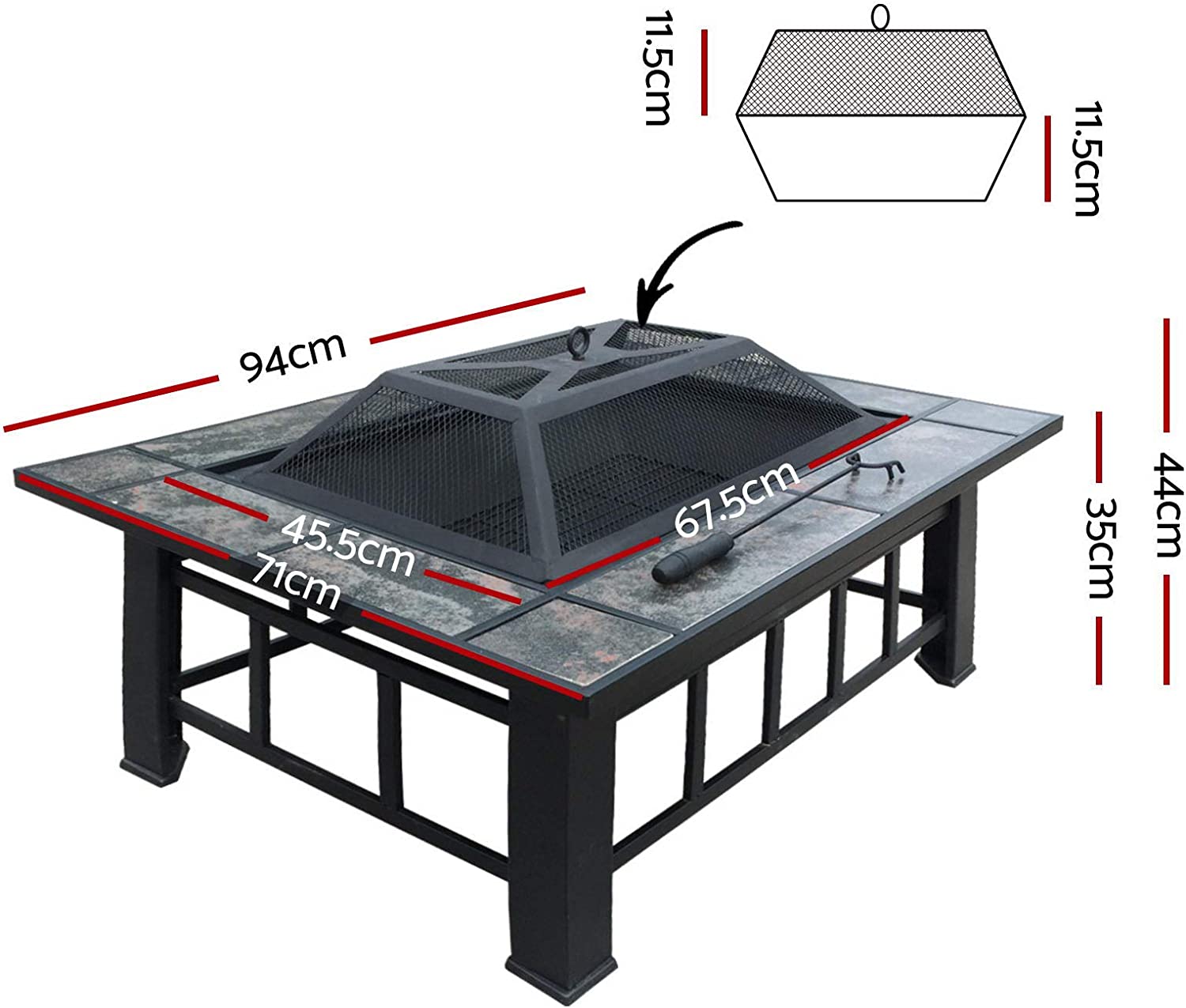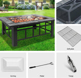 Outdoor Fire Pit BBQ Table Grill Fireplace w/Ice Tray Barbecue Picnic Heater Desk Garden Patio Camping Cooker Brazier