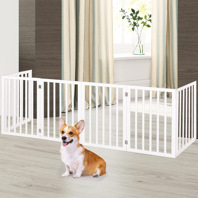 - SIMPLE & STURDY: This versatile Dog Gate serves as a Pet Fence, Room Divider, and furniture all in one. Crafted from high-quality MDF, it boasts an appealing Wood Finish and features robust Anti-scratch rubber feet.The gate for dogs offers a solid barricade for your small dog or puppy without the need for drilling. It provides an exceptional means to restrict your pet's access to specific areas of your home.