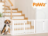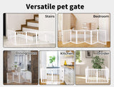 Wooden Pet Gate Dog Fence Retractable Safety Stair Barrier Security Door (White-282cm x 60.5cm x 1.8cm)