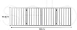 - Open Dimension: 139 cm Width, 60.5 cm Height, 1.8 cm Thickness, Folded Dimension: 54 cm Width, 67 cm Height, 5.4 cm Thickness, 4 cm space between slats. Gate