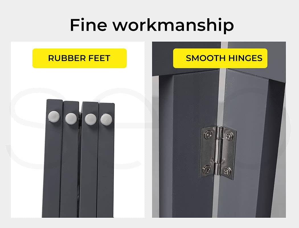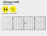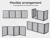 - EFFORTLESS SETUP & STORAGE: Each panel of this gate is identical in size, and its two-way metal hinges facilitate quick folding similar to an accordion. This ensures a straightforward setup and effortless storage, occupying minimal space.