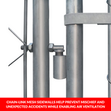 - This metal dog playpen helps keep your pets safe from predators Chain-link mesh sidewalls help prevent mischief and unexpected accidents while enabling air ventilation.