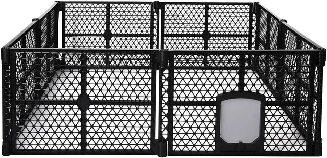 Pet Playpen Folding Dog Plastic Puppy Exercise Enclosure Fence 8 Panels, Dog Play Pen Connectable Fence with Lockable Gate, Universal Portable Pet Exercise Cage Yard for Indoor Outdoor