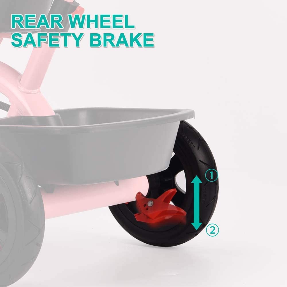 - Rear storage basket and front storage basket, bottle holder, perfect for storing everything your child needs. Note: This is ride-on toy only, do not use as a pram or stroller to transport children.