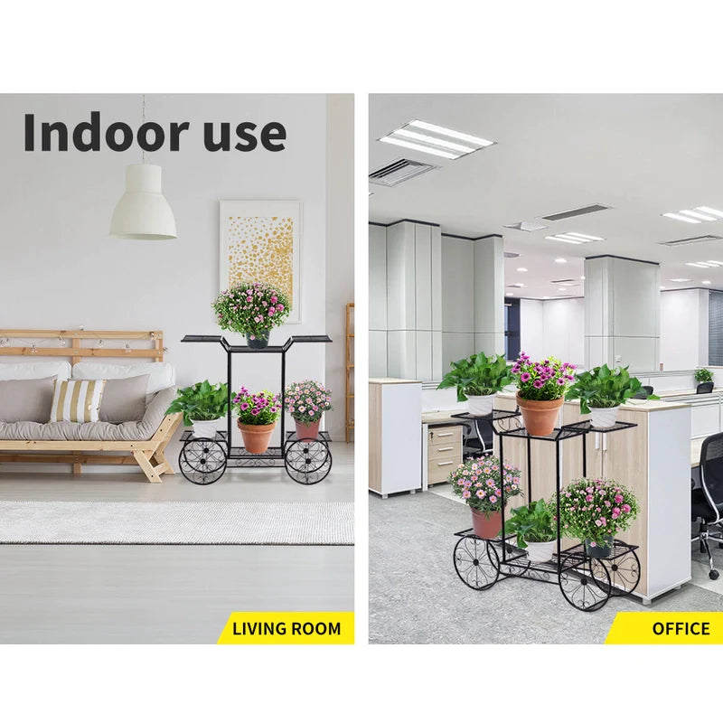 Plant Stand Outdoor Indoor Garden Decor Flower Pot Rack Iron 4 Wheeler