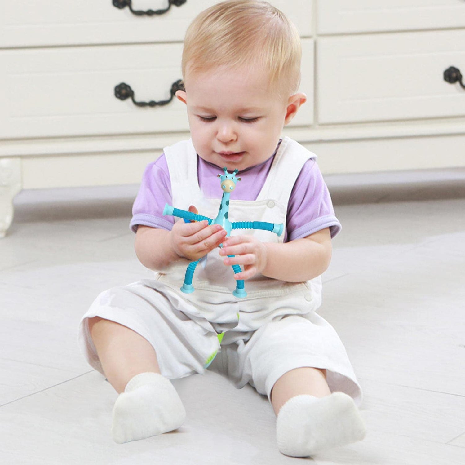 Pop Tubes Fidgets Toy Set,4Pcs Giraffe Pop Tube Sensory Toys,Telescopic Suction Cup Giraffe Toy Educational Stress Relief Fidgets Tubes Toy,Parent-Child Interactive Decompression Toy, Boy Girl