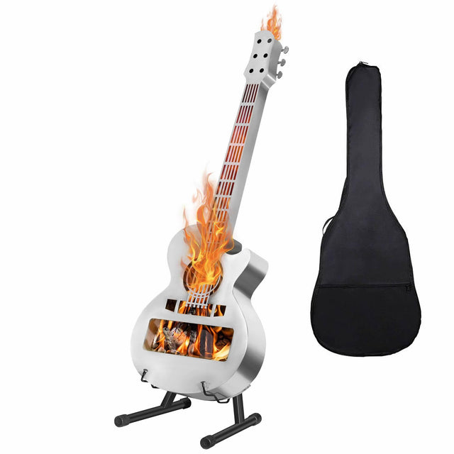 - No Assembly Required: Unpack and enjoy! Our one-piece stainless steel Guitar Fire Pit is ready to go straight out of the box. Its user-friendly design ensures you can get the fire started immediately, with no hassle or extra tools needed, making it ideal for spontaneous outdoor fun.
