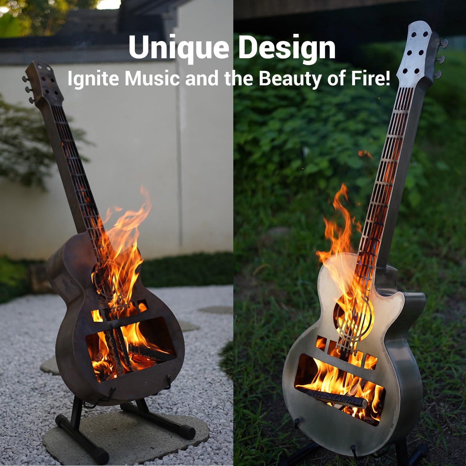 - Distinctive Gift Idea: Searching for a unique gift? Our Guitar Fire Pit doubles as a stunning piece of functional art, making it a splendid Christmas or birthday present for those who love distinctive designs. The practicality of a clean, smoke-reduced burn combined with the novelty of its design is sure to please anyone who loves to combine their passion for music with the great outdoors.