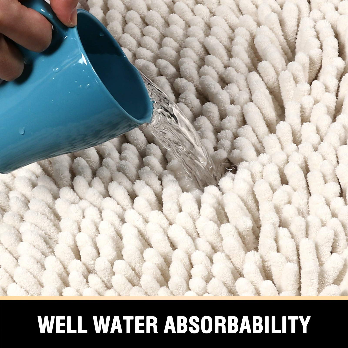 - EXTRA ABSORBENT: These upgraded luxurious chenille microfiber bath rugs, made up of thousands of chenille strands, absorbs water instantly, wicks away moisture instantly and dries quickly, absorbing water extremely quickly and preventing annoying water on the bathroom floor. Its thickness and softness keep your feet warm and comfortable