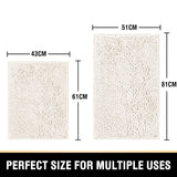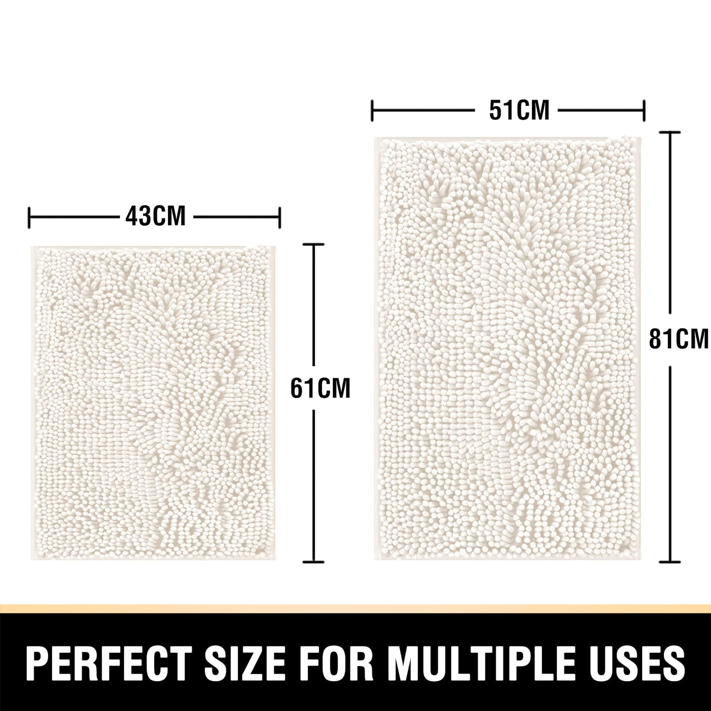 PrinceDeco Bathroom Rugs Bath Mats for Bathroom Non Slip Chenille Bathroom Rug Mat and Absorbent Shaggy Rugs Washable Dry Fast Plush Area Carpet Mats - (2 PCS - 51cm x 81cm / 43cm x 61cm), Ivory