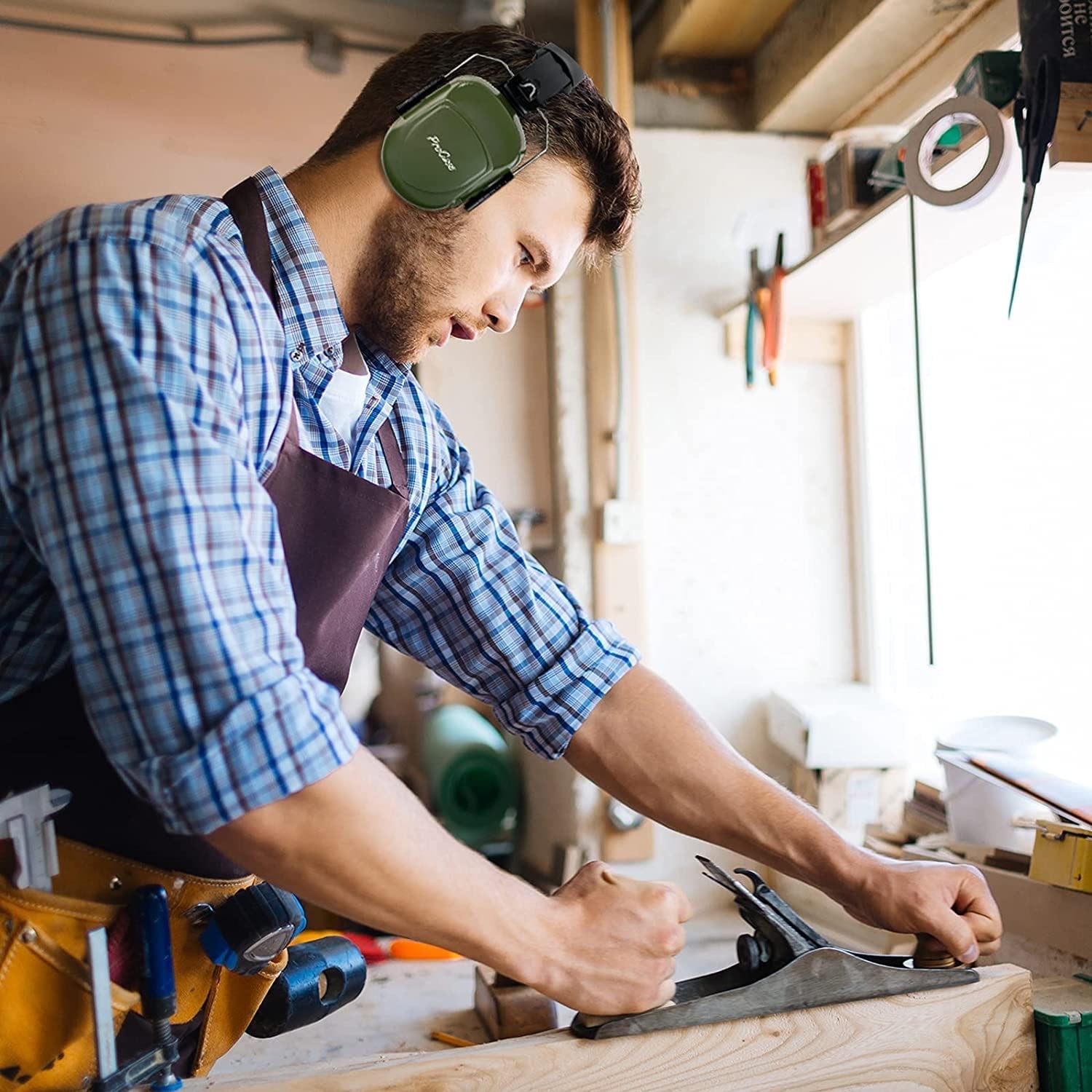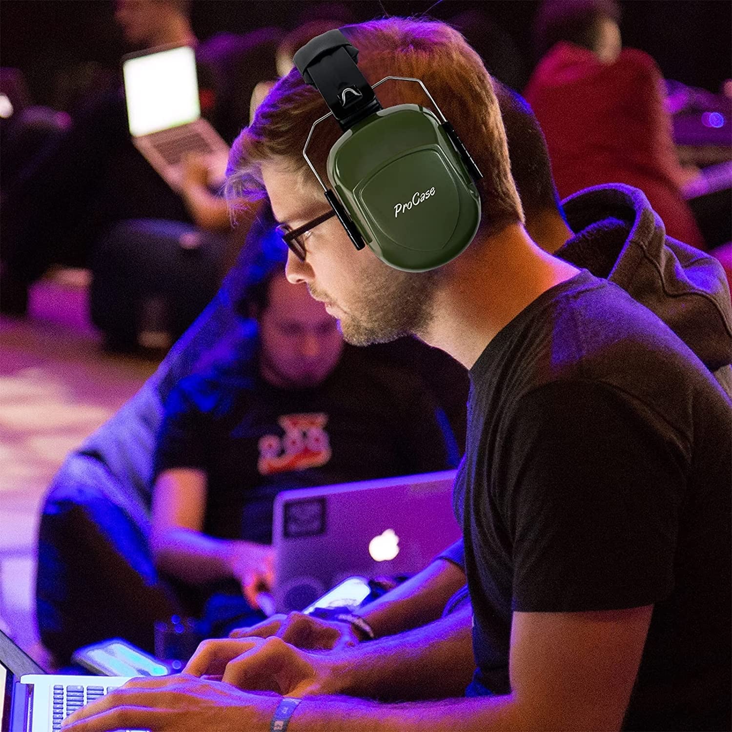 ProCase Noise Reduction Safety Ear Muffs, Hearing Protection Earmuffs, NRR 28dB Noise Sound Protection for Mowing Construction Manufacturing Woodwork Men Women Adult -Moss Green
