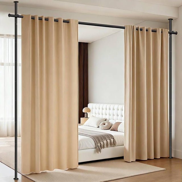 • No Dril & No Damage: This curtain room divider no drill is designed with strong floor to ceiling tension room divider, leaving no holes or damage, making it an ideal solution for difficult to install areas such as rental homes, apartments, dormitories, and other temporary spaces.Suitable for various surfaces such as wood, marble, ceramic tiles, and gypsum. Apartments, dormitories, etc.
