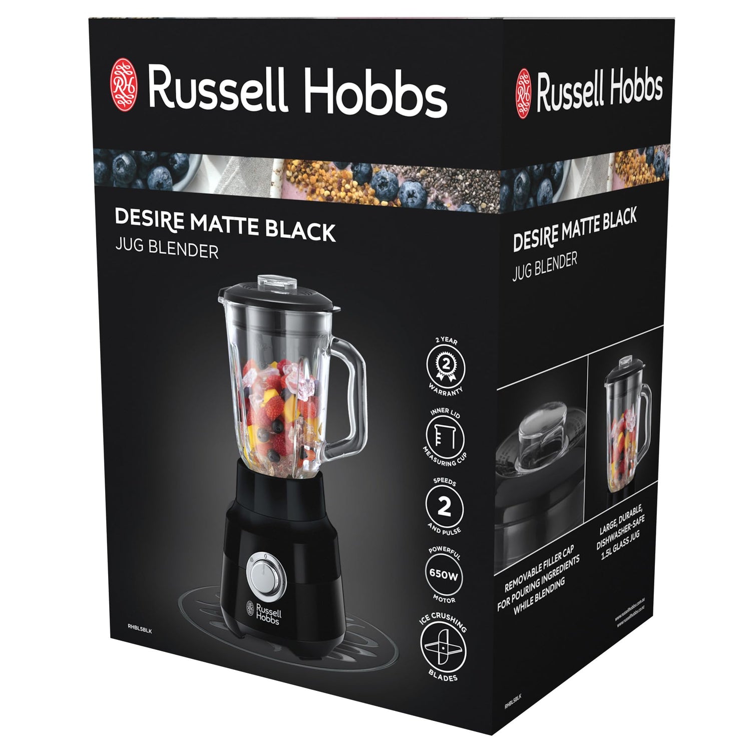 Russell Hobbs Desire Jug Blender, 1.5L Glass Jug, Stainless Steel Blades, Matte Black