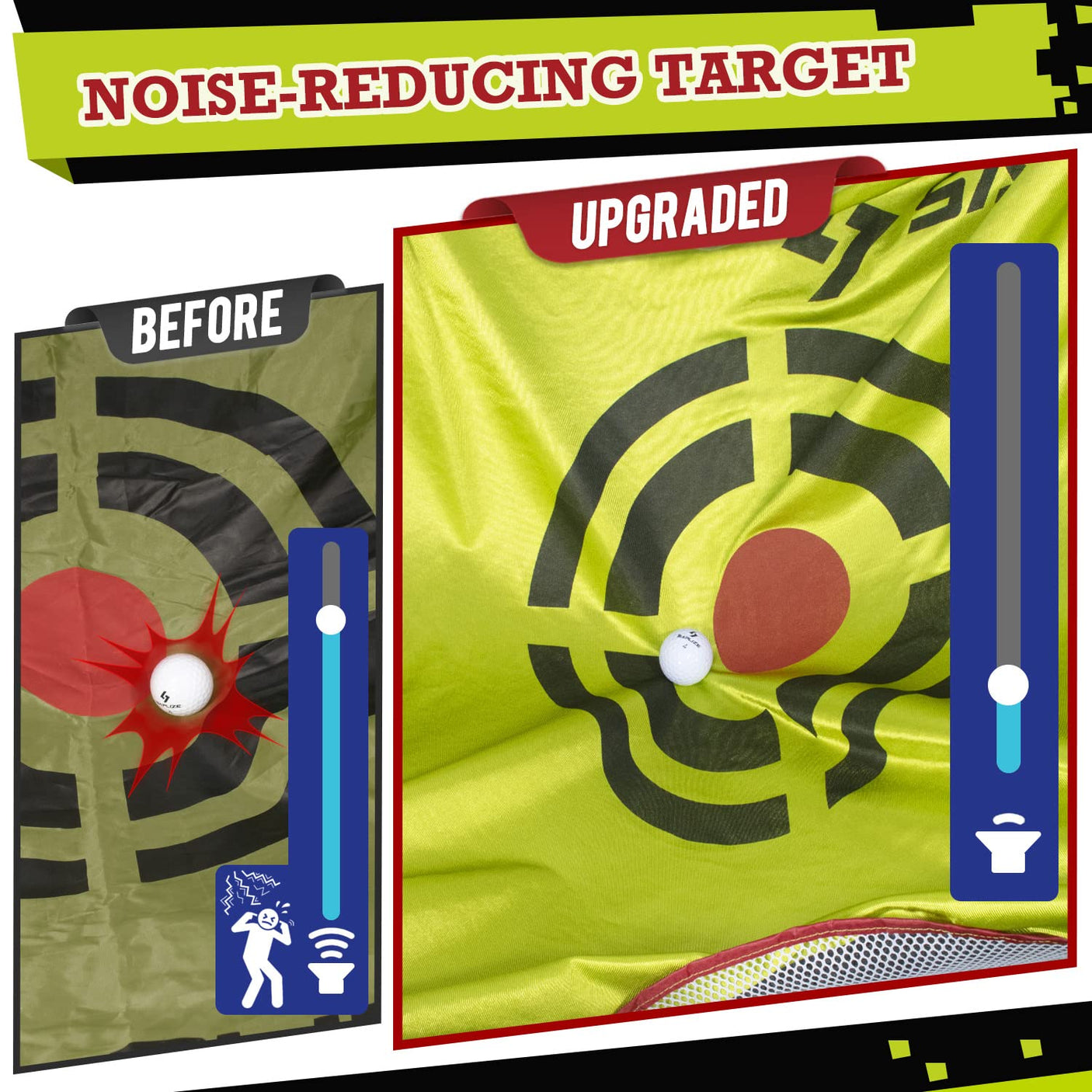 • INNOVATIVE NOISE-REDUCING TARGET: Made of highly elastic nylon material, this design is engineered to endure high-speed impacts while effectively absorbing the noise and shock caused by golf ball impacts.