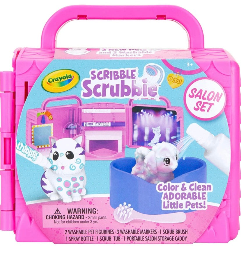 Scribble Scrubbie, Portable Beauty Salon Pet Play Set, Perfect Gift for Kids, Includes 2 Pet Figurines; Colour & Clean Adorable Little Pets!